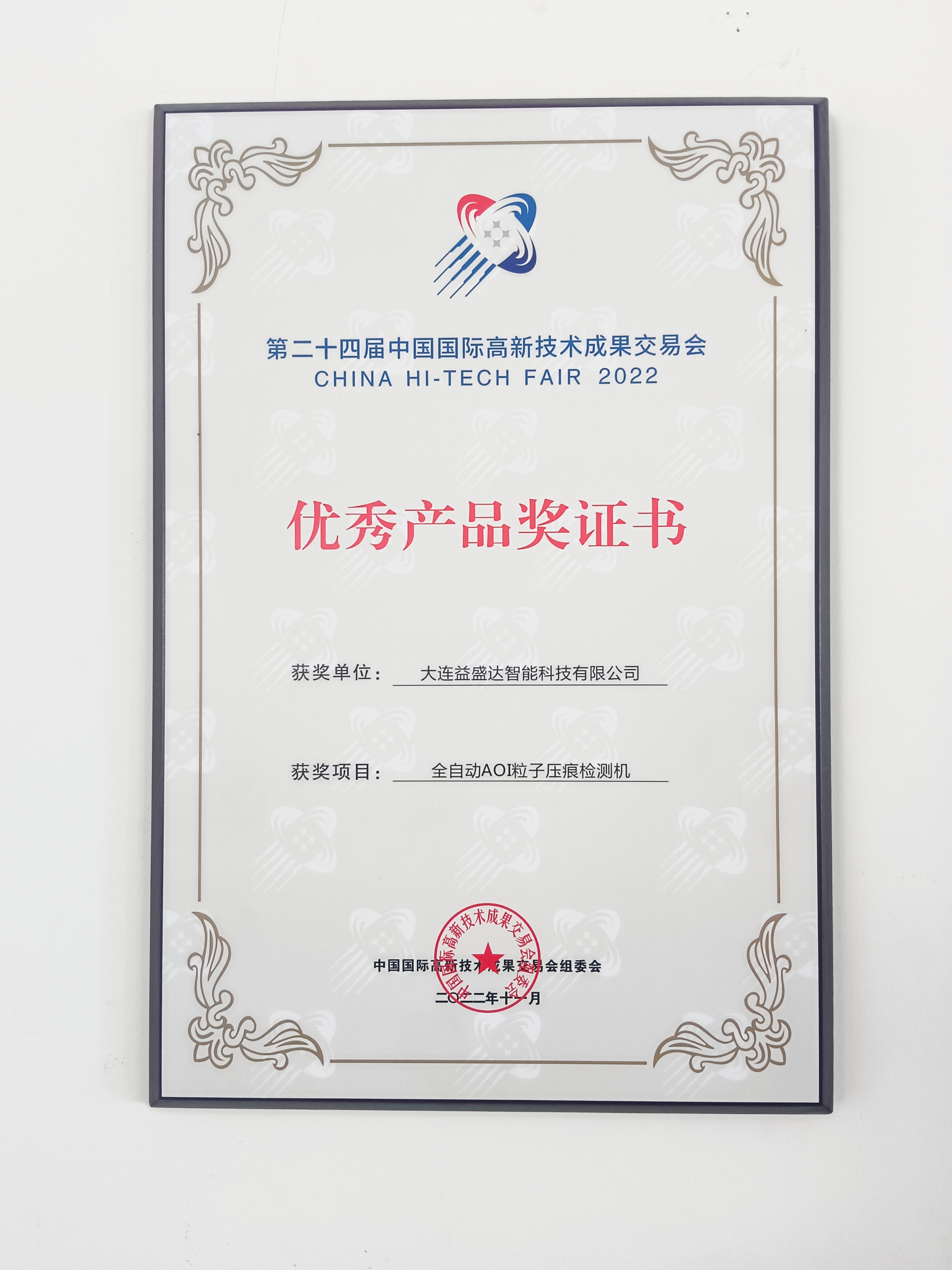 在剛剛落下帷幕的“第二十四屆中國國際高新技術成果交易會”(以下簡稱國際高交會),大連益盛達智能科技有限公司(以下簡稱“益盛達公司”)的全自動AOI粒子壓痕檢測機,憑借先進的檢測功能,榮獲“優(yōu) 秀 產(chǎn) 品 獎”。